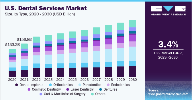 The dental market is expanding favorably as a result of numerous technological developments in dentistry, such as laser dentistry, cosmetic surgery, and implants. These services are provided by specialized dentists who ensure to improve the oral health of their patients. This growth in demand for specialized dental services has also created business opportunities for businesses that produce products or services that are needed by these healthcare professionals to efficiently perform their tasks.